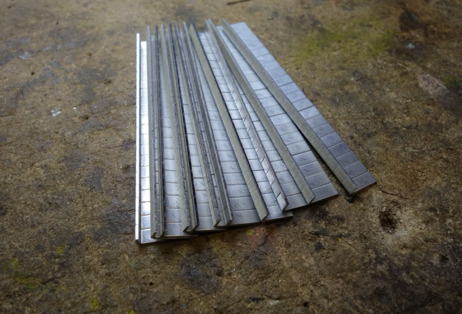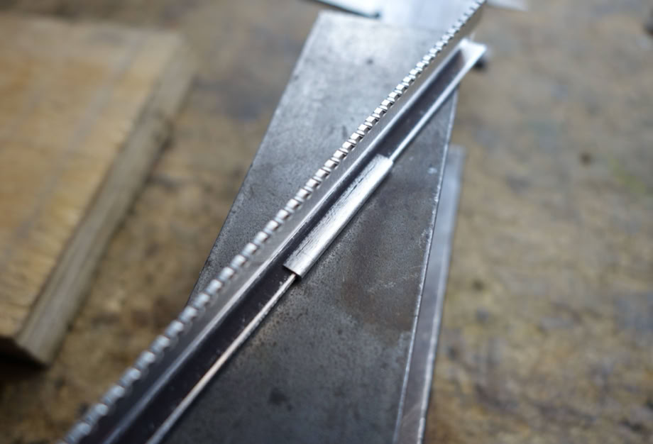 ..um dann auf einer Flachstahlunterlage alle 5 Bänder, sauber aneinander zu führen. Da darf NULL Spalt sein!