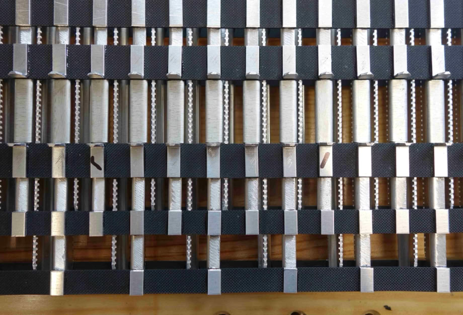 Das Ausrichten erfolgt grundsätzlich per Auge. mab sollte halt wissen was schon gemacht ist. Ein Trick dabei ist eine Markierung vor den "frisch aufgelegten 6 Stegen"