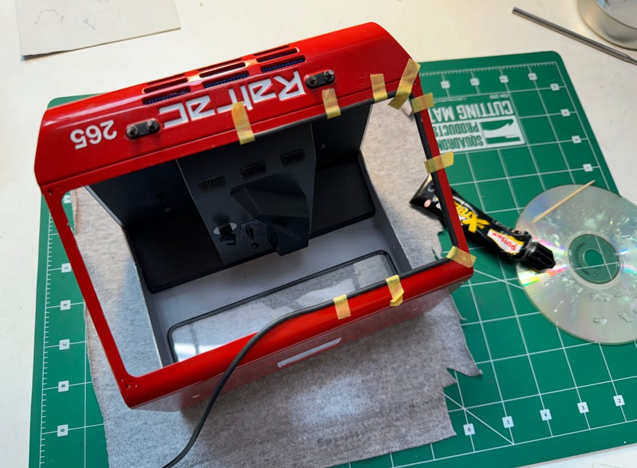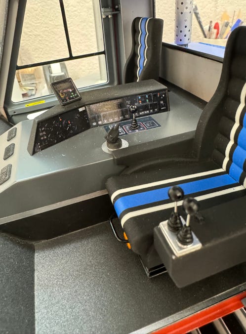 I painted the seats just like the original Ratrac. I had waterslide decals printed for the dashboards; that was my contribution to this kit.