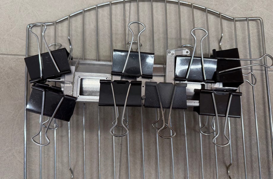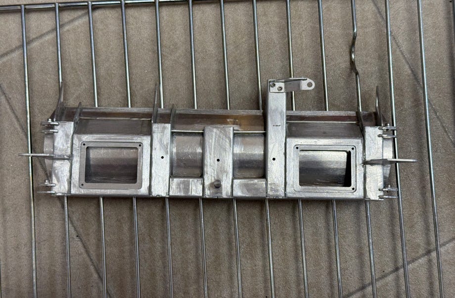The tracks are a feast for the eyes and correspond optically exactly to the original. Each bar is glued together from 2 precisely folded sheet metal parts and an end piece. They are screwed on with tiny M1.6 stainless steel hexagonal screws + washer, and of course true to the original with 2 screws per counter plate. The track brackets are printed parts that I previously painted silver. In total there were 1116 screws for both chains. These are the most complex and beautiful tracks I have assembled so far.