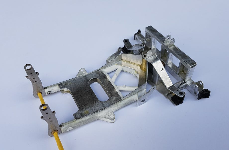 The chassis is a solid construction made of sheet metal parts, which I glued together in the oven with UHU plus endfest 300.
