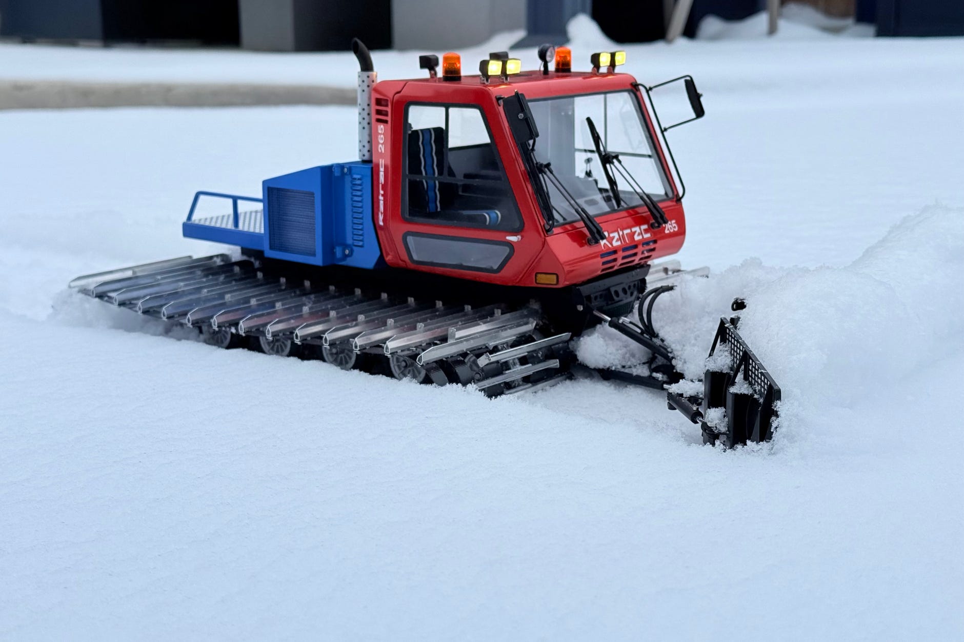 On January 7, 2025, the time had finally come: a little fresh snow fell, and I was able to test the Ratrac in the snow for the first time, albeit without the rear-mounted tiller.