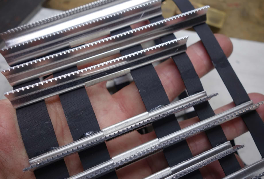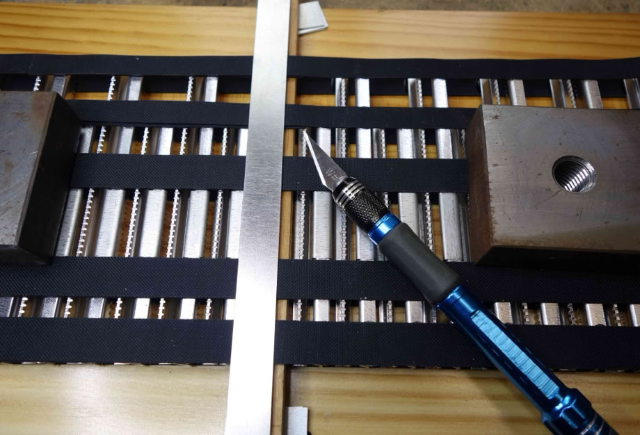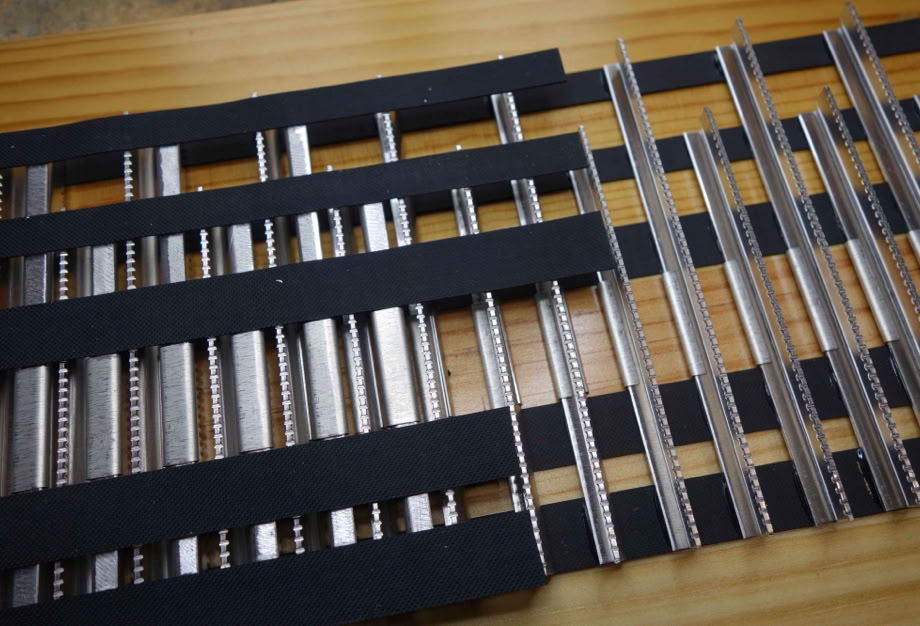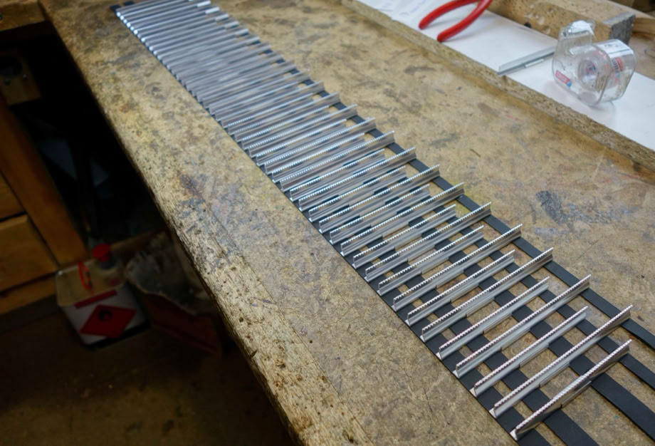 ..um dann auf einer Flachstahlunterlage alle 5 Bänder, sauber aneinander zu führen. Da darf NULL Spalt sein!