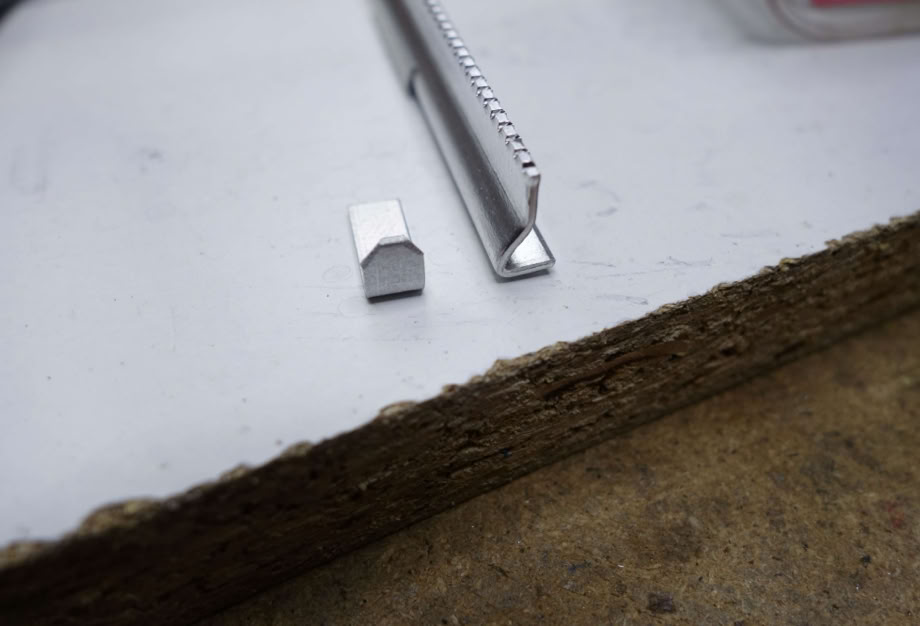 Das Abschrägen der Stege mach ich mit der Schere nach Augenmaß. Die Zahnung erleichtert die Sache erheblich