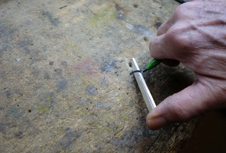 Das "Rohstangenmaterial" ist übrigens schon perfekt angeschliffen und penibelst entfettet. Es empfiehlt sich deswegen, diese Arbeit mit Gummihandschuhen zu machen.